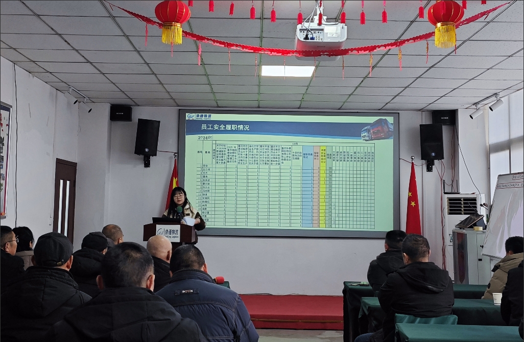 唐堯傳達了協通12月員工安全履職情況以及2024年年度安全履職情況,唐堯表示2024年較2023年超速、疲勞情況有所降低,但一般違章較多,安全部接下來將對違章較多的人員進行交通法律法規學習重點學習,以提高駕駛員的交通安全法律法規意識。